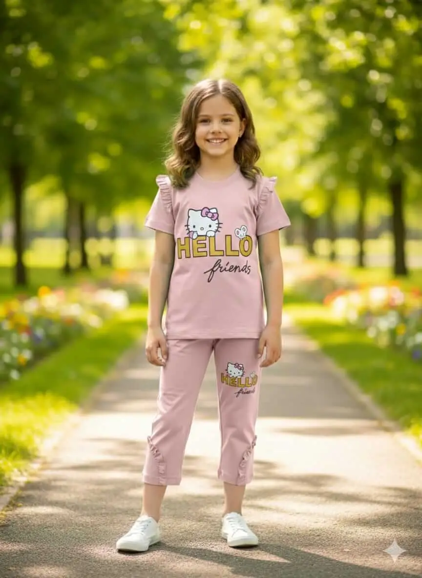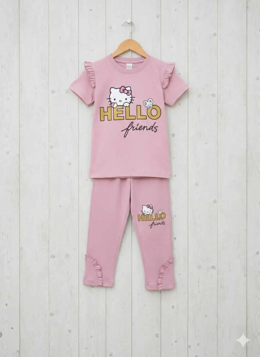 Shop the cutest Girls Hello Kitty Tracksuit through online shopping at low price in Pakistan. This soft cotton-blend Pakistan kidswear set includes a stylish Tshirt and jogger pants, perfect for daily wear, school, and playtime. A great pick for parents searching online shopping for kidswear in Pakistan.